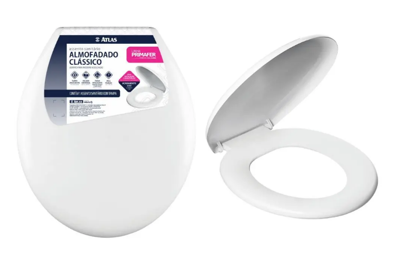 Assento sanitário almofadado. Acompanha kit para fixação. Encaixe Universal. Preenchido com espuma de poliuterano (PU). Acabamento liso. Tampa envolvente. Suspiro na parte traseira. Fácil de instalar e limpar. Assento almofadado, com design clássico, adapta-se a qualquer banheiro. Macio e confortável é a escolha perfeita para consumidores exigentes.
